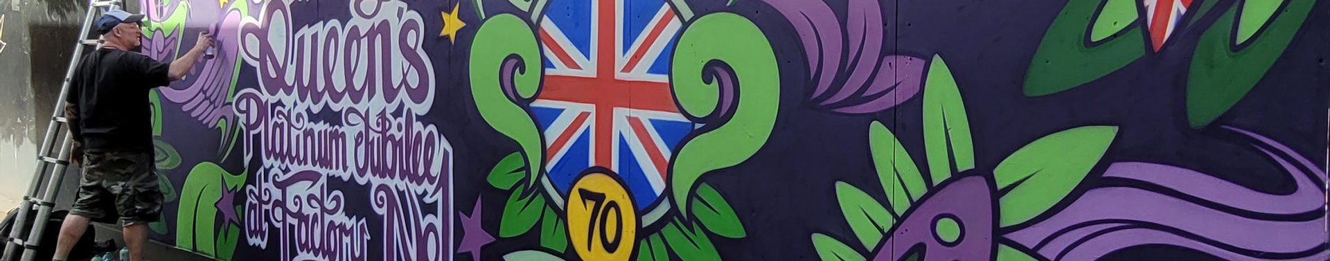 City & Country were thrilled to work with renowned illustrator and street artist SPZero76 to create a homage to the Queen’s Platinum Jubilee at Factory No.1 in Bristol.