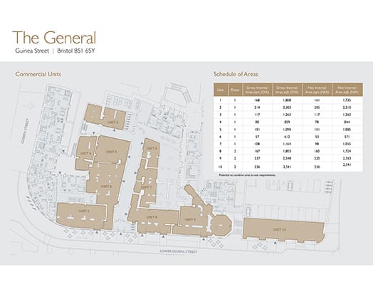 A selection of 8 riverfront commercial units suitable for A1-A4, B1 and D2 uses. The units are located on the lower ground level of the former Bristol General Hospital, situated on Lower Guinea Street with views across the Bathhurst Basin. The former hospital is being converted into 206 one, two, three and four bedroom homes.