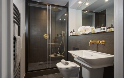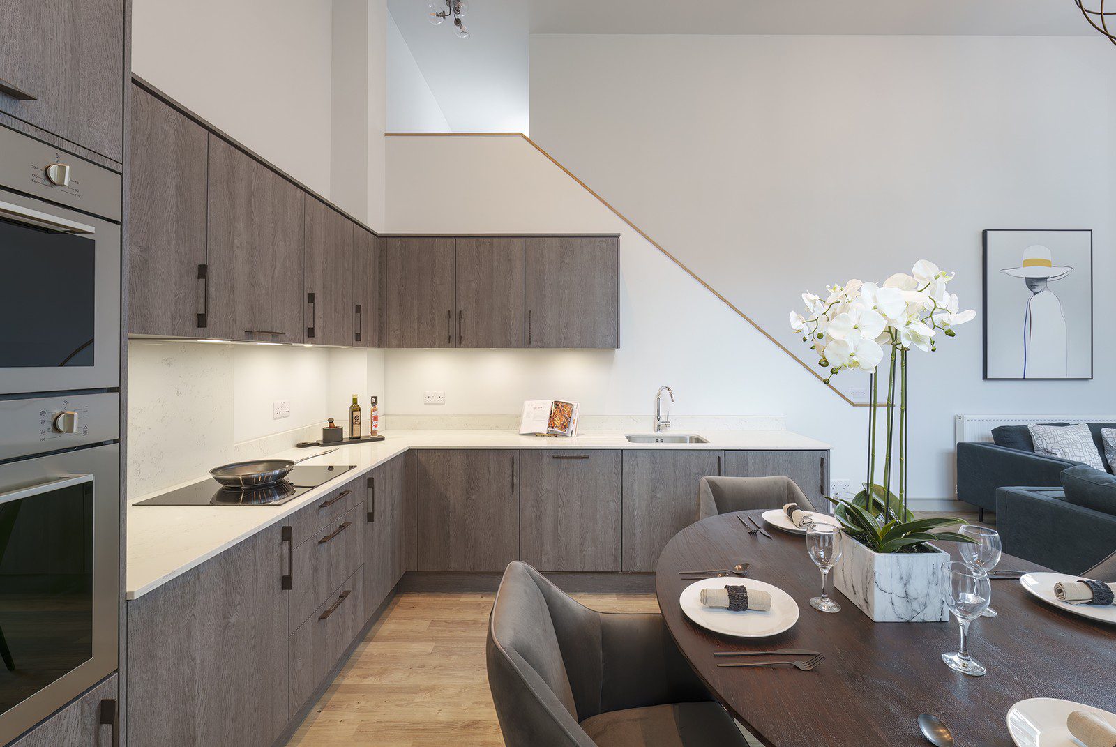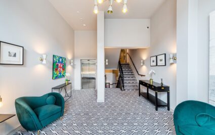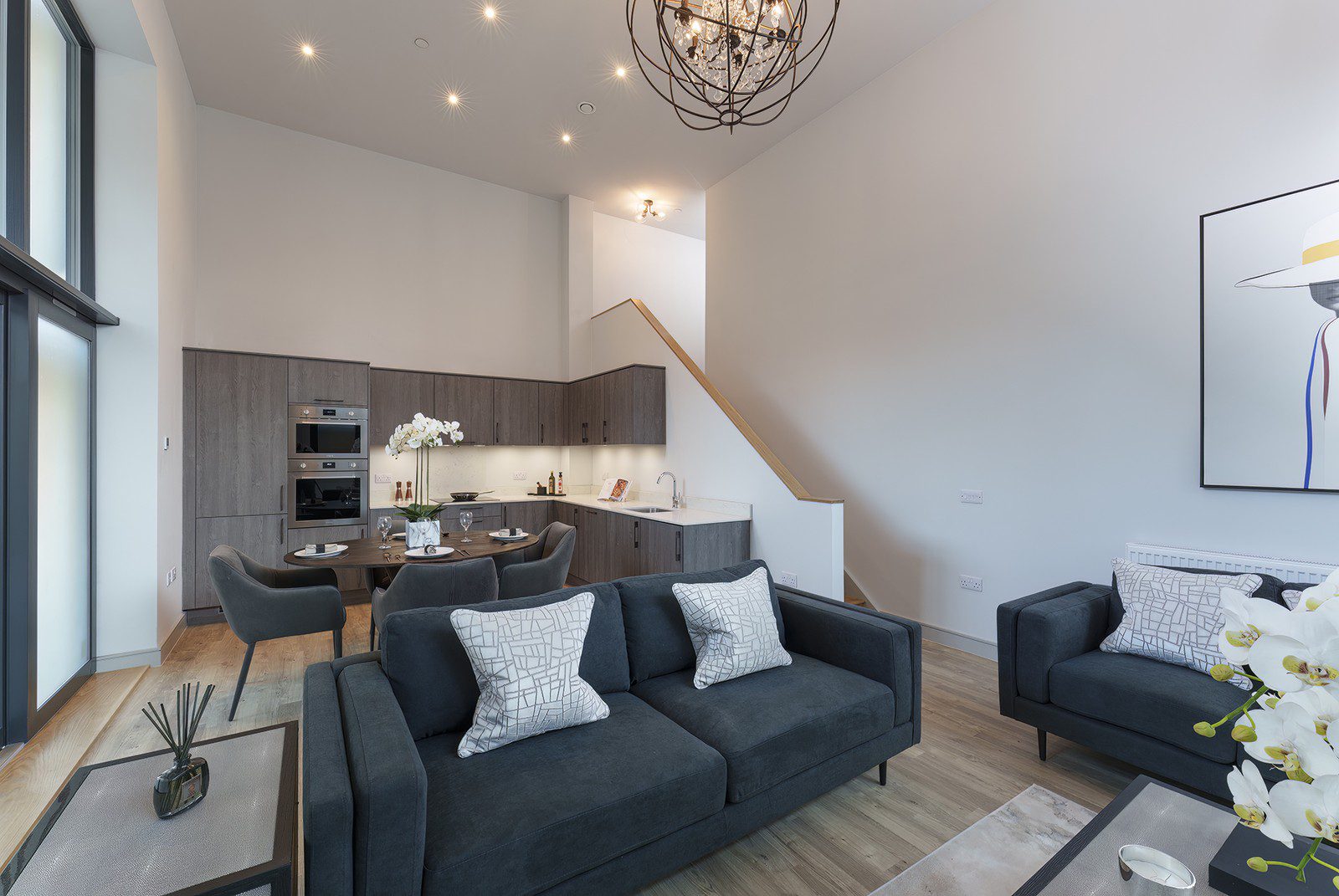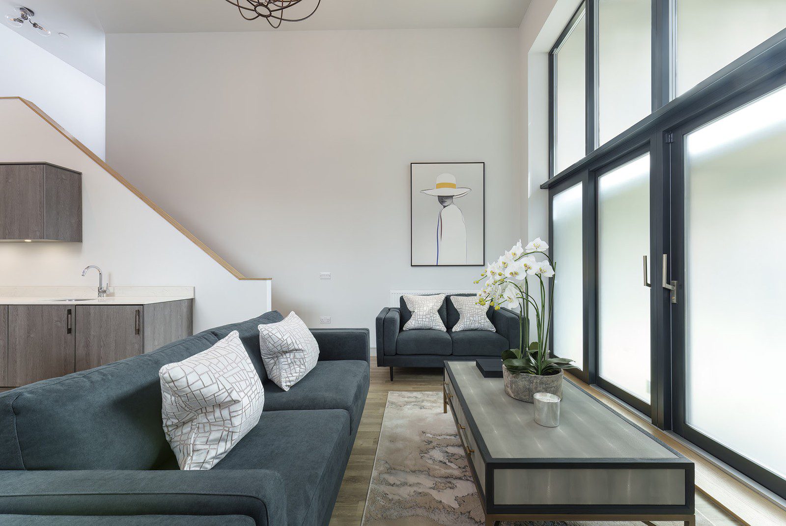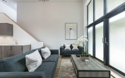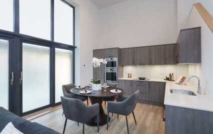 With a private entrance, this exceptional two-bedroom duplex apartment combines a striking double-height living space with style, comfort, and convenience. The open-plan kitchen, dining and living area is flooded with natural light, creating a dramatic and inviting space for both relaxing and entertaining.
