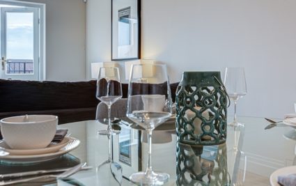 This light and spacious two bedroom apartment is located on the first floor within the old sanatorium. It boasts a large open plan kitchen, dining, living room area which opens onto the fantastic south-facing, private terrace.
