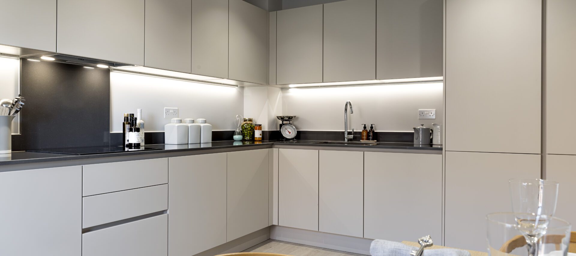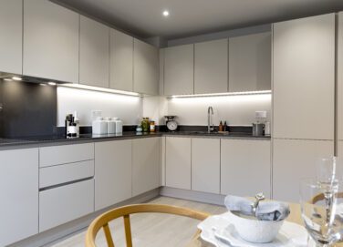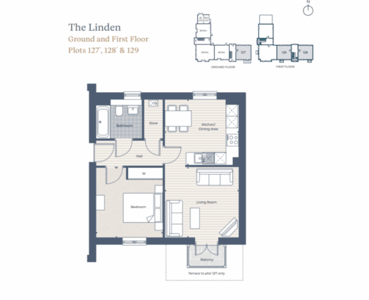 Plot 129, The Linden is a stylishly crafted one-bedroom apartment situated on the first floor, offering a harmonious blend of practicality and modern living. The separate kitchen and dining area comes complete with sleek integrated Bosch appliances and durable laminate flooring, creating a functional yet contemporary space for cooking and dining. The bright, airy living room opens onto a private, South facing balcony, ideal for unwinding or hosting guests. A spacious double bedroom featuring a built-in wardrobe, a beautifully finished bathroom, and a convenient storage cupboard complete this well-appointed apartment.