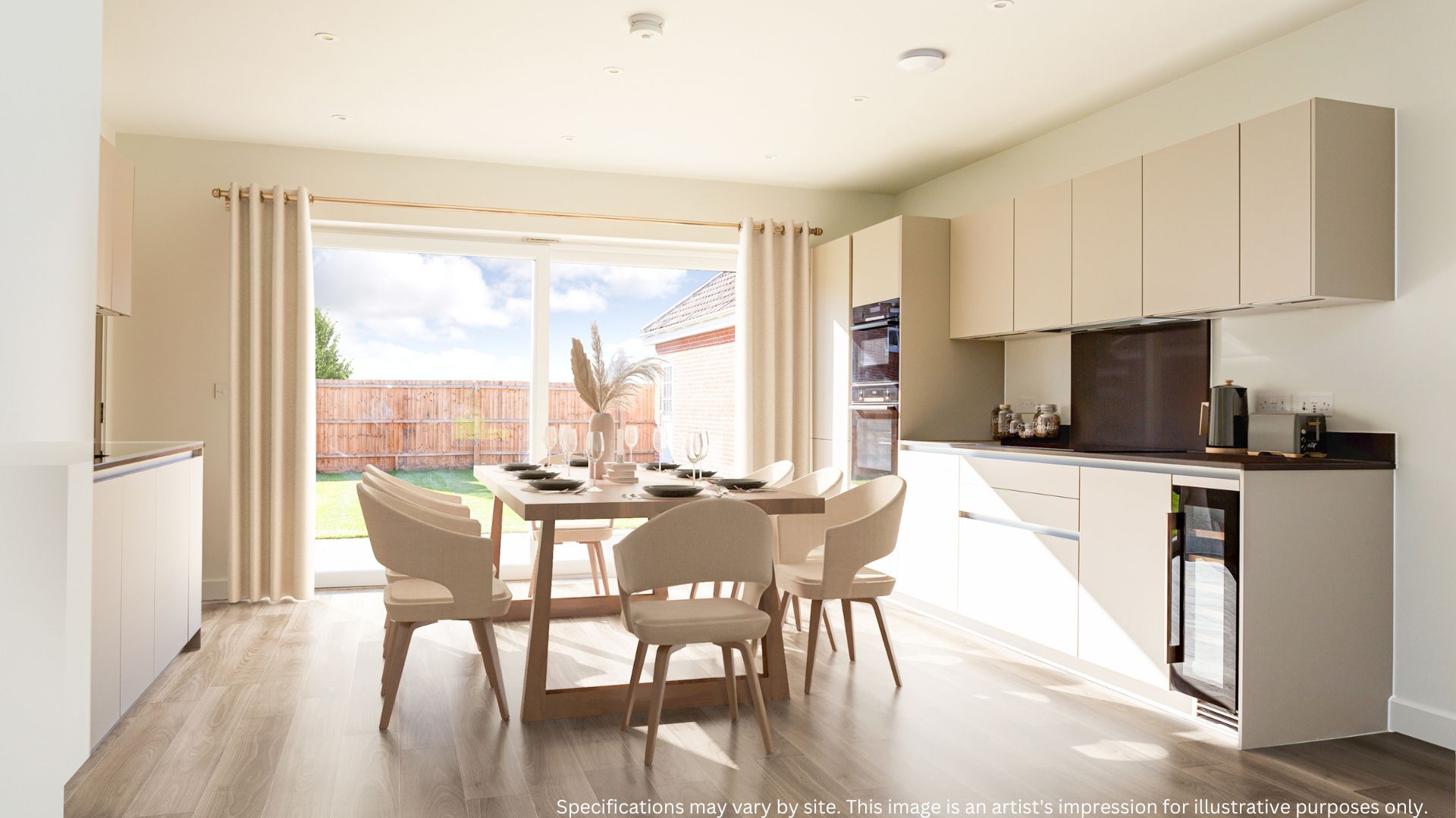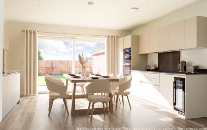 Welcome to The Rushley, Plot 433, a four-bedroom detached home in the award-winning Manningtree Park. Spanning 1,571 sq ft, this home features a spacious living room, downstairs WC, and a kitchen/dining area with Siemens appliances and a utility room. Bi-fold doors open to a south-facing garden. Upstairs, you’ll find four double bedrooms, including a principal with fitted wardrobes and an en-suite, plus three additional bedrooms for family or guests.