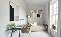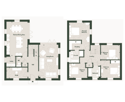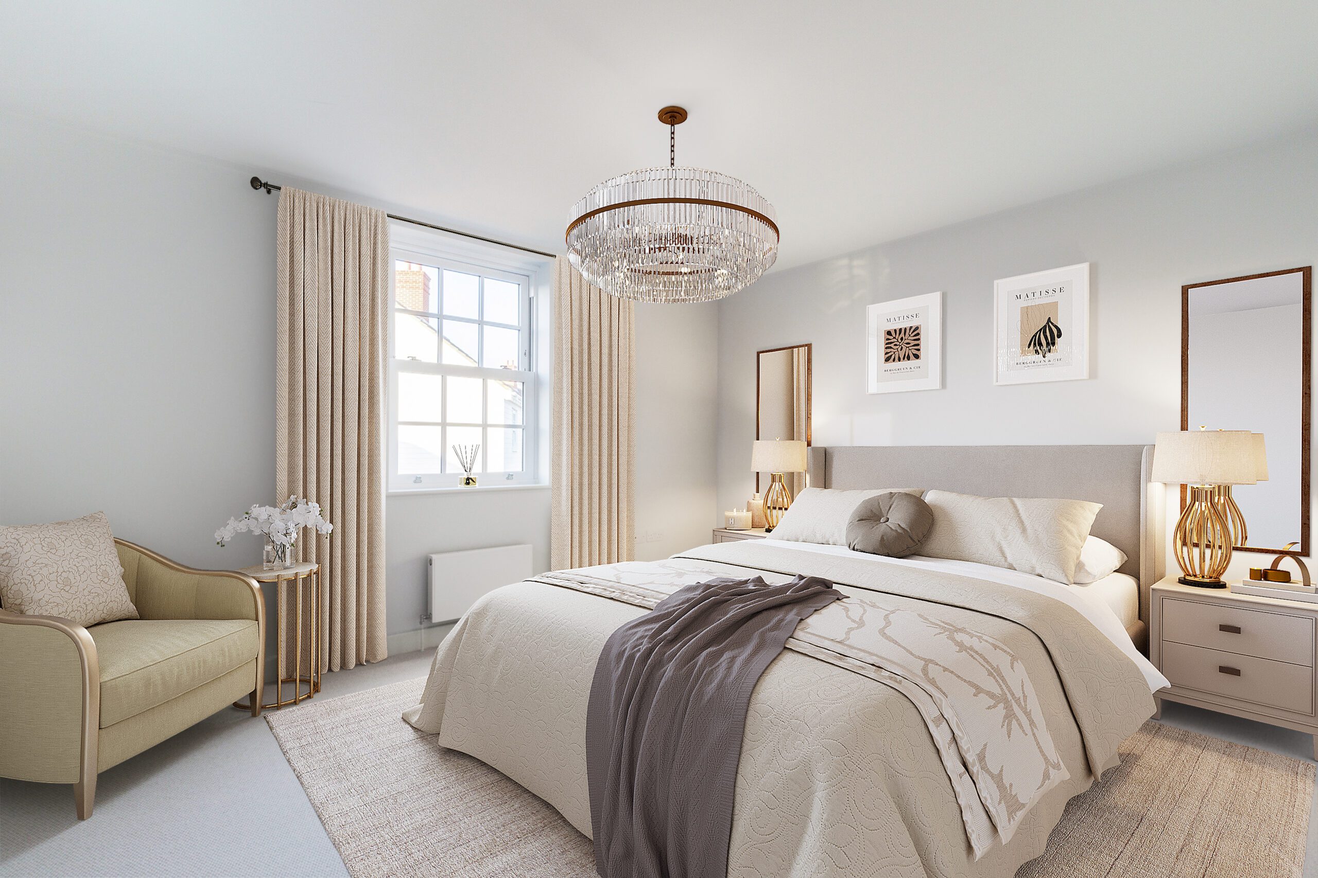 At the heart of The Mackintosh is the open-plan kitchen, dining, and family area, an inviting space perfect for entertaining. The modern kitchen is a chef’s dream, featuring a central island with a breakfast bar, integrated appliances, a Caple wine cooler, and sleek Silestone worktops. Amtico oak flooring runs throughout, adding warmth and elegance. Large sliding doors flood the space with natural light and open onto the beautifully landscaped garden, seamlessly connecting indoor and outdoor living. For more relaxed moments, the separate living room provides a cozy retreat, complete with a fireplace and direct garden access. A dedicated study at the front of the home offers a quiet space for working from home, or could be used as a playroom or hobby space. A utility room adds extra convenience to the ground floor.
