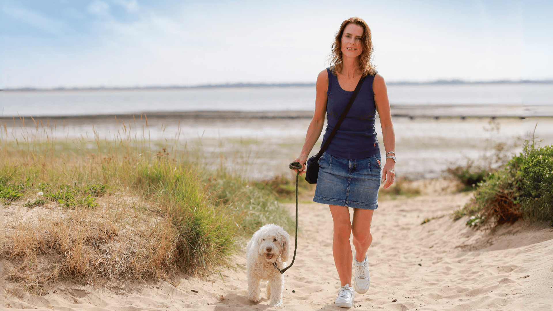 A south-facing sand and shingle beach with a laid-back feeling where you can spend hours playing seaside games, enjoy quiet strolls or walks with the dog.