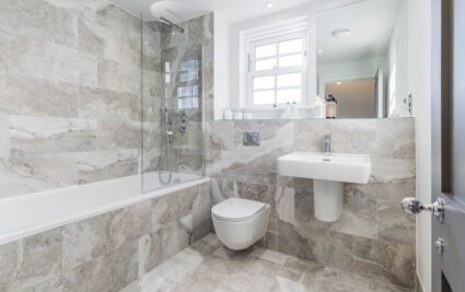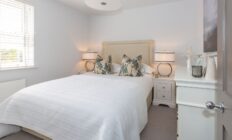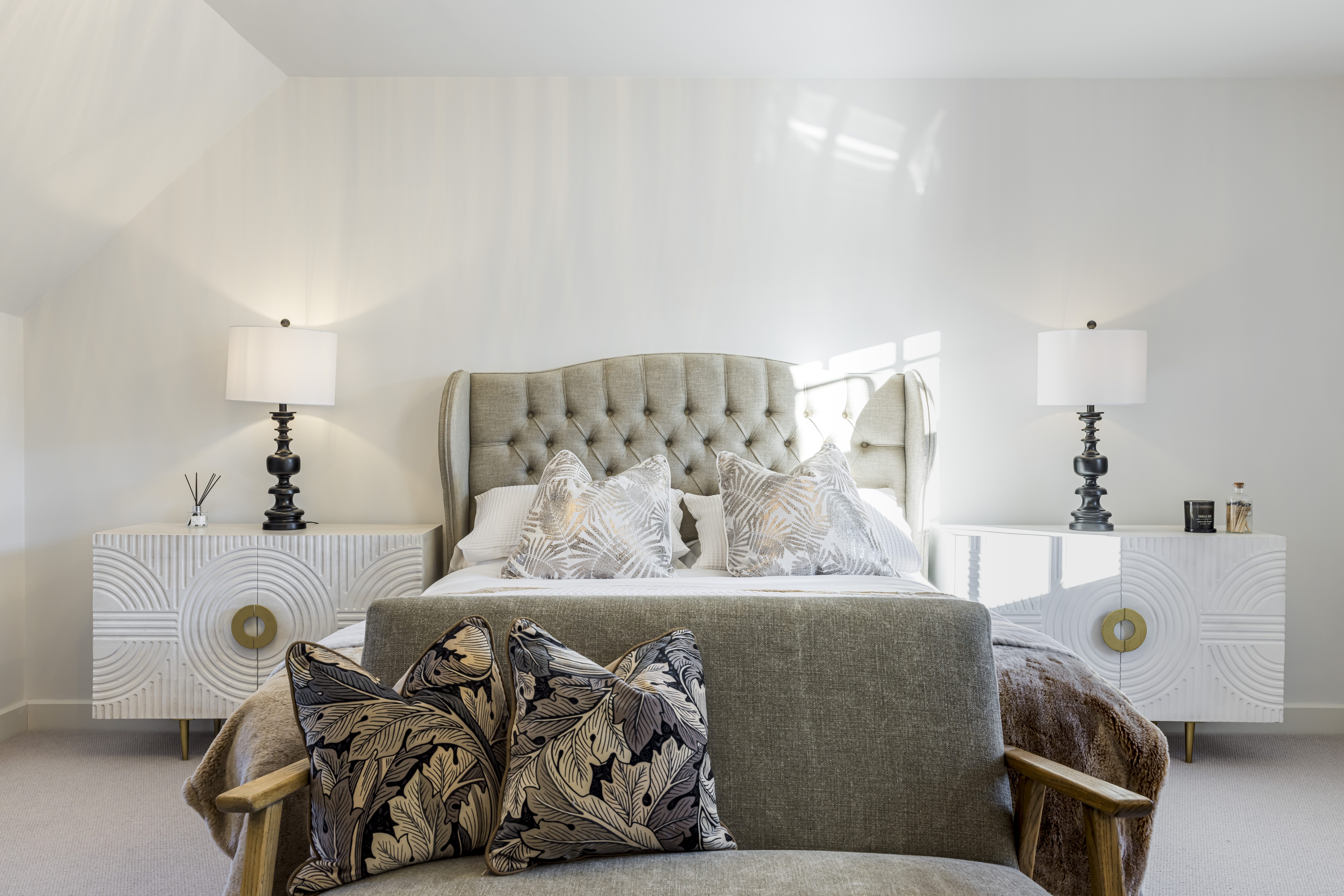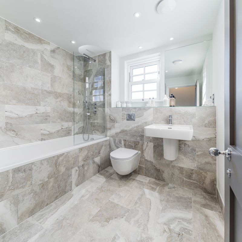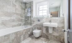 The principal bedroom features 100% textured two-fold wool carpets and fitted wardrobes with sliding glass doors. The modern en-suite bathroom is appointed with chrome finished brassware from Vado and Laufen ceramics as well as porcelain tiles to the walls and floors with tiled skirting. There are also two further generous double bedrooms and a stylish family bathroom with bath.