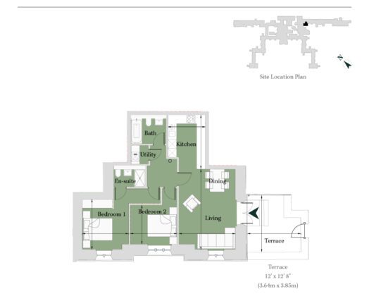 Welcome to Apartment OR03, a stylish 2-bedroom home with a private terrace entrance, open-plan living, a kitchen with integrated Siemens appliances, fitted wardrobes to the principal bedroom, an en-suite, a family bathroom, and a utility space for added convenience.