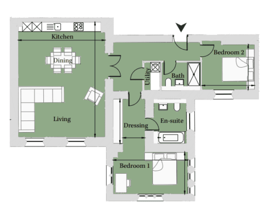 Apartment OR25 is a beautifully designed 2-bedroom home, perfect for those looking to downsize without compromise. Thoughtfully laid out with an open-plan living, dining, and kitchen area, it features integrated Siemens appliances and generous counter space, ideal for relaxed everyday living and effortless entertaining.