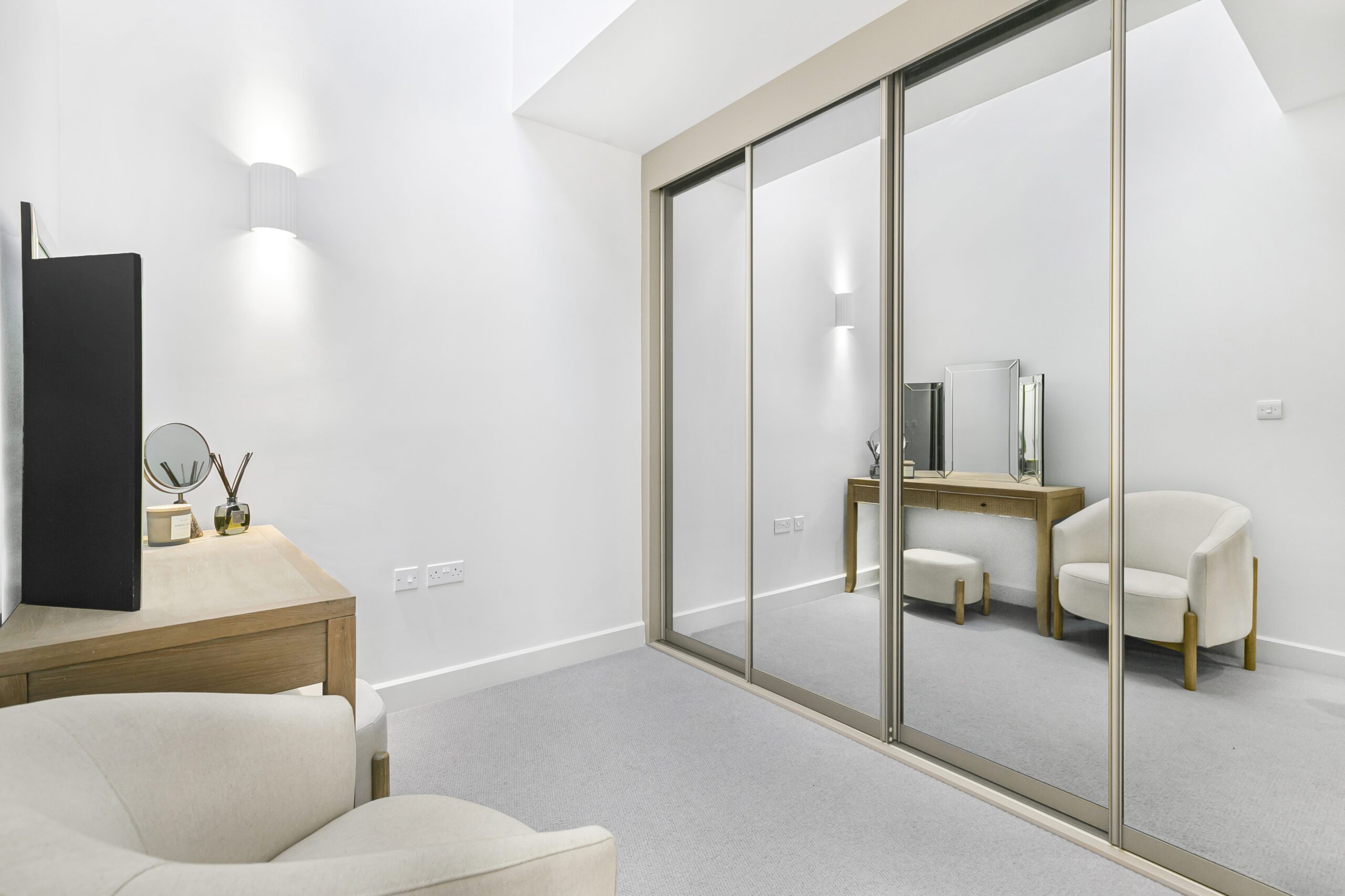 The bedroom features its own dressing area with fitted wardrobes, giving you plenty of storage without compromising on space. The high-spec bathroom includes a bathtub with overhead shower, offering both comfort and flexibility.