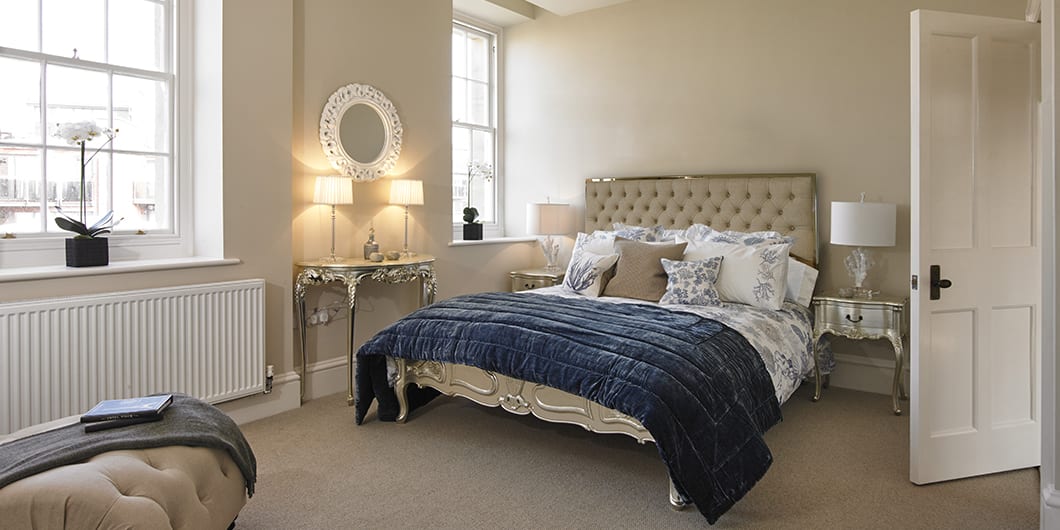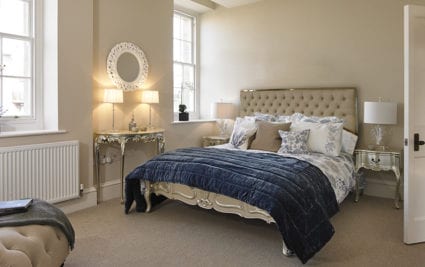 The master bedroom features a large dressing room and a luxurious en suite shower room appointed with Laufen sanitaryware and Brassware from Crosswater.