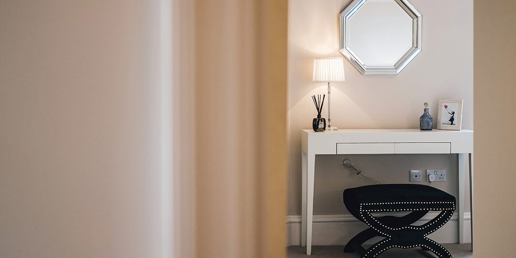 The master bedroom is spacious and wonderfully bright thanks to two original windows. It features a dressing area and a luxurious en suite shower room with his and hers basins.