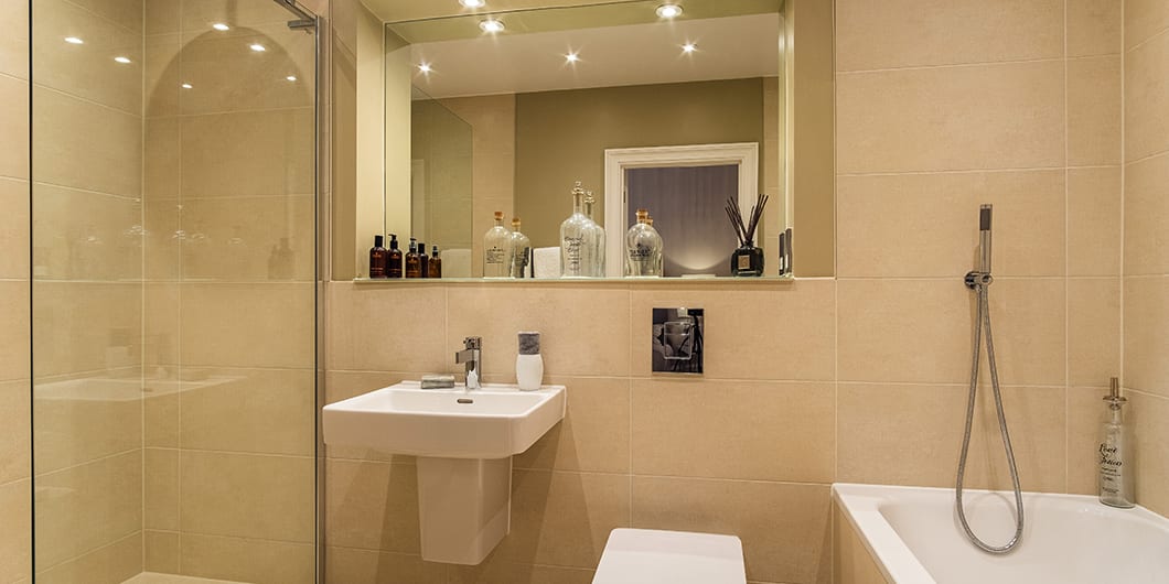 Adjacent to the second bedroom is a contemporary bathroom with a twin basins, a bath and shower.