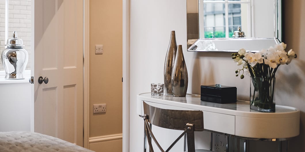 Both bedrooms are spacious, with room for a dressing table and the master benefits from a dressing area. This bedroom also features an en suite with both a bath and shower and his and hers sinks.