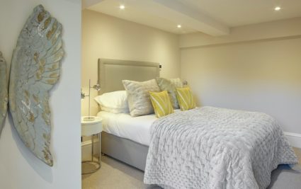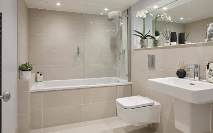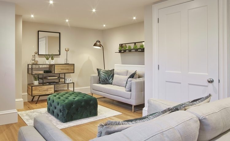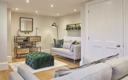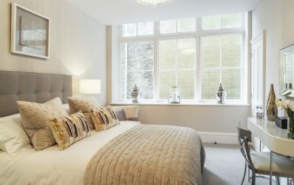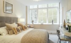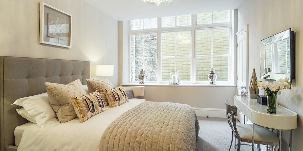 The dual-aspect master bedroom benefits from two large windows and both bedrooms have been fitted with sumptuous carpets. In between both is the luxurious bathroom which boasts porcelain tiles, sanitaryware by Laufen and brassware from Crosswater.