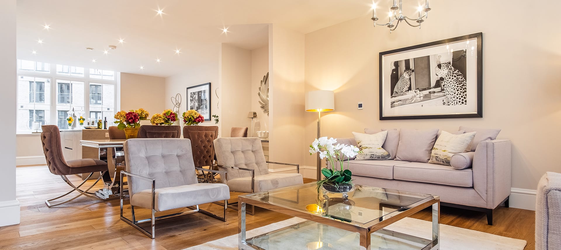 This property boasts an open plan living, kitchen and dining room with luxurious oak flooring and a large feature window that floods this space with light.