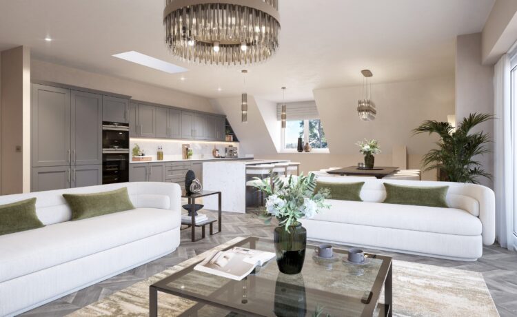 WS18 is a stunning two-bedroom apartment, offering an east-facing terrace with views of the historic Sanatorium. The spacious open-plan kitchen, dining, and living area is designed for modern living, with elegant doors leading directly onto the terrace, seamlessly blending indoor and outdoor spaces.