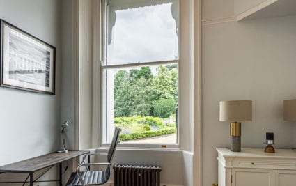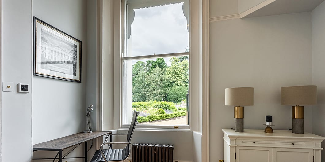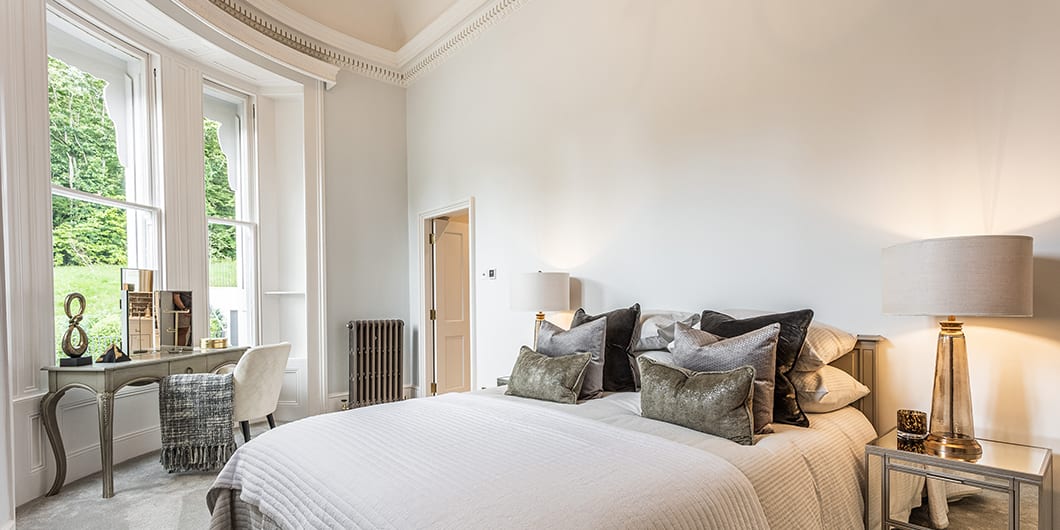 The two bedrooms are located on the first floor. The luxurious principal bedroom features original detailing, an ‘Adams’ style fireplace and fantastic views over the landscaped entrance courtyard. There is a four-piece bathroom situated adjacent to this bedroom with twin basins, a freestanding bath and a walk-in rain shower. The second bedroom has access to an en-suite four-piece bathroom. Both bathrooms are appointed with Villeroy & Boch sanitaryware and Crosswater brassware.