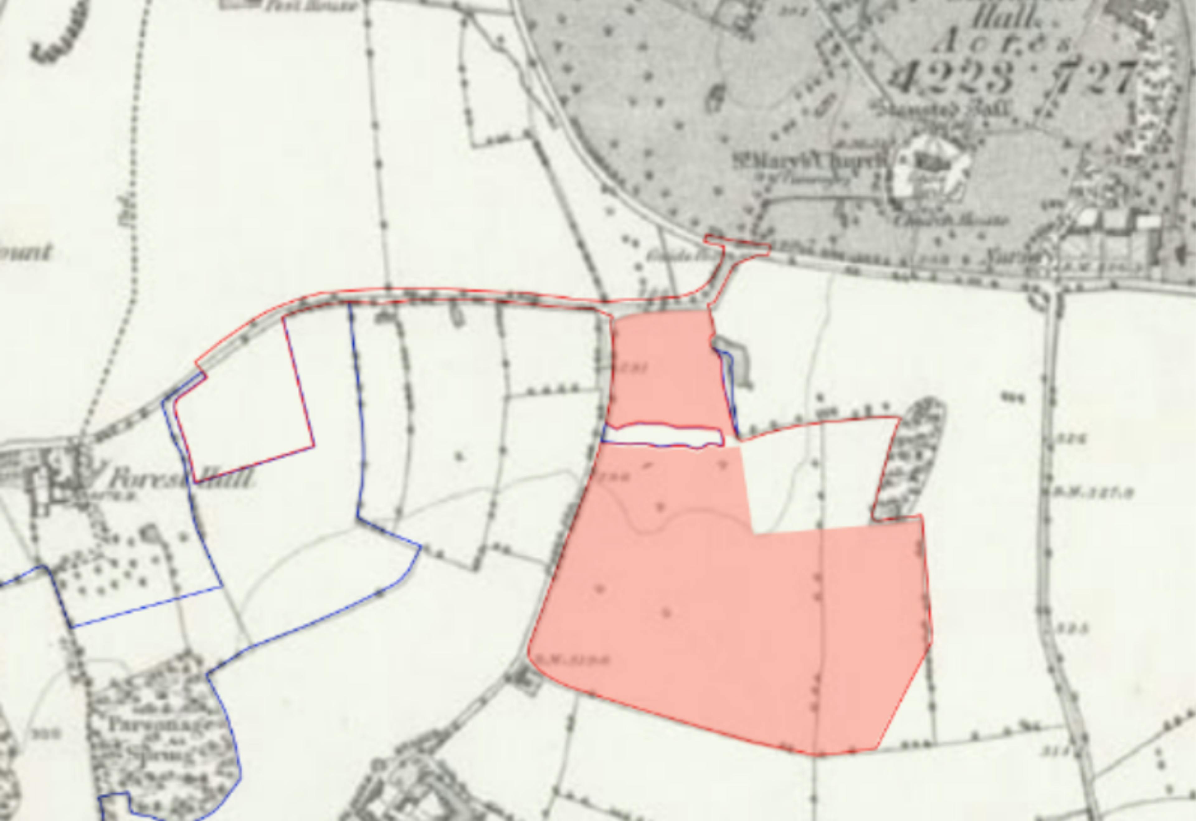 The site of the proposals has always been shown on the maps as fields south of Stansted Hall Park and St Mary’s Church as on the 1876 map shown below: