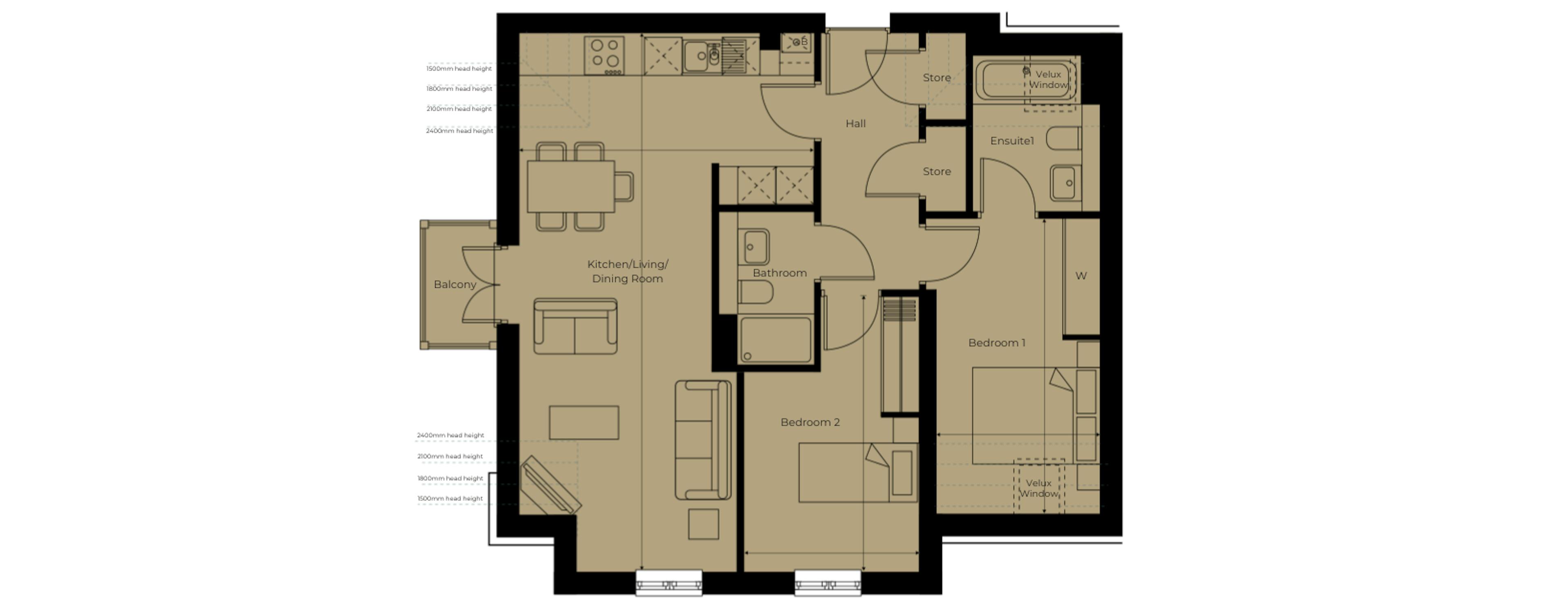 Plot 134 presents The Aspen, a thoughtfully crafted two-bedroom apartment on the second floor, offering an ideal balance of comfort, elegance, and functionality. The generous open-plan layout combines the kitchen, living, and dining areas, complete with integrated appliances and contemporary flooring, perfect for relaxed day-to-day living as well as hosting guests. This bright and welcoming space extends onto a private balcony.