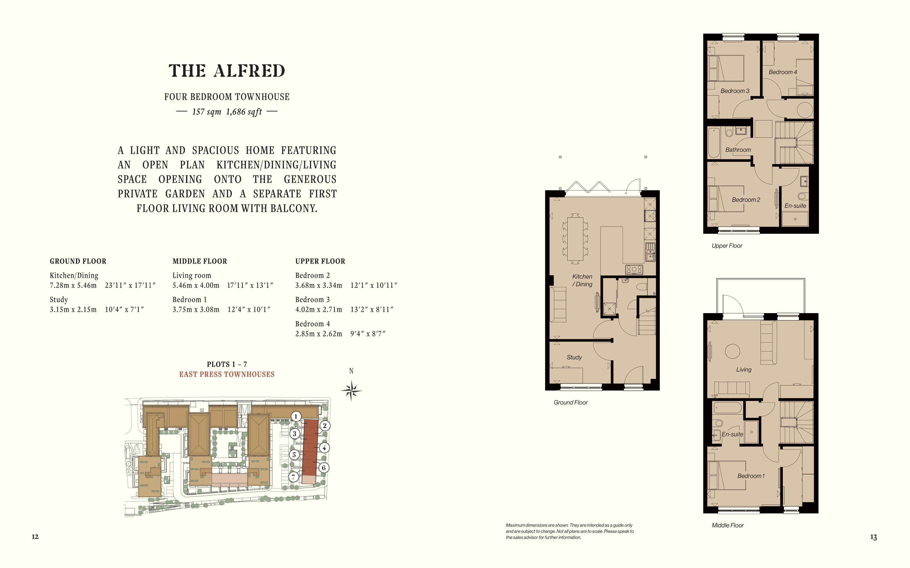 The Alfred is a bright and versatile four-bedroom family home, thoughtfully arranged over three floors and offering 1,687 sq ft of spacious living. Designed with modern family life in mind, the ground floor features an open-plan kitchen, dining and living area with bi-folding doors onto a private west-facing garden – an ideal space for children to play or enjoy family time outdoors. There’s also a dedicated study, perfect for homework or working from home, plus a convenient ground floor WC.