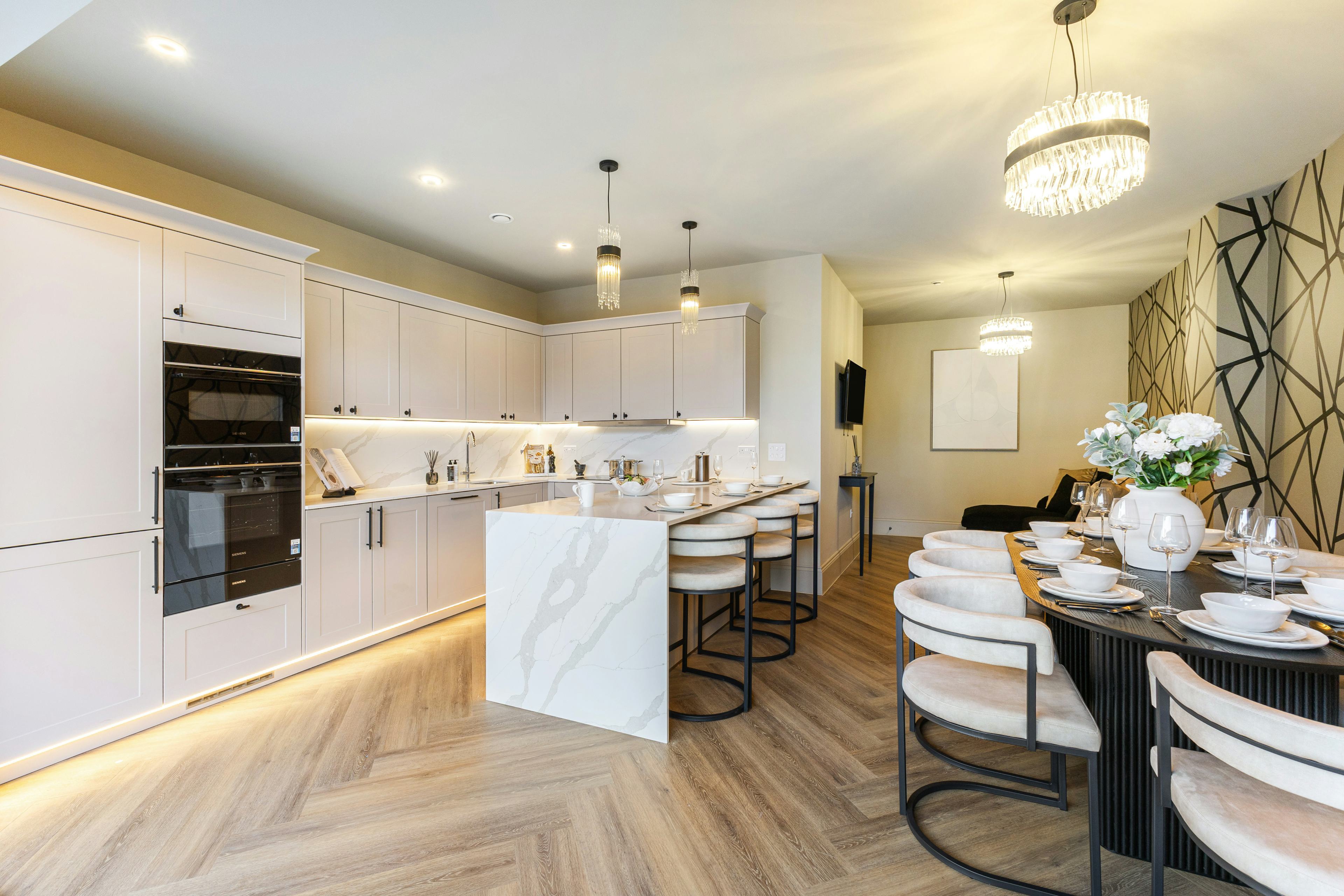 - Fully integrated high-end Siemens appliances including wine cooler with 2 temperature zones