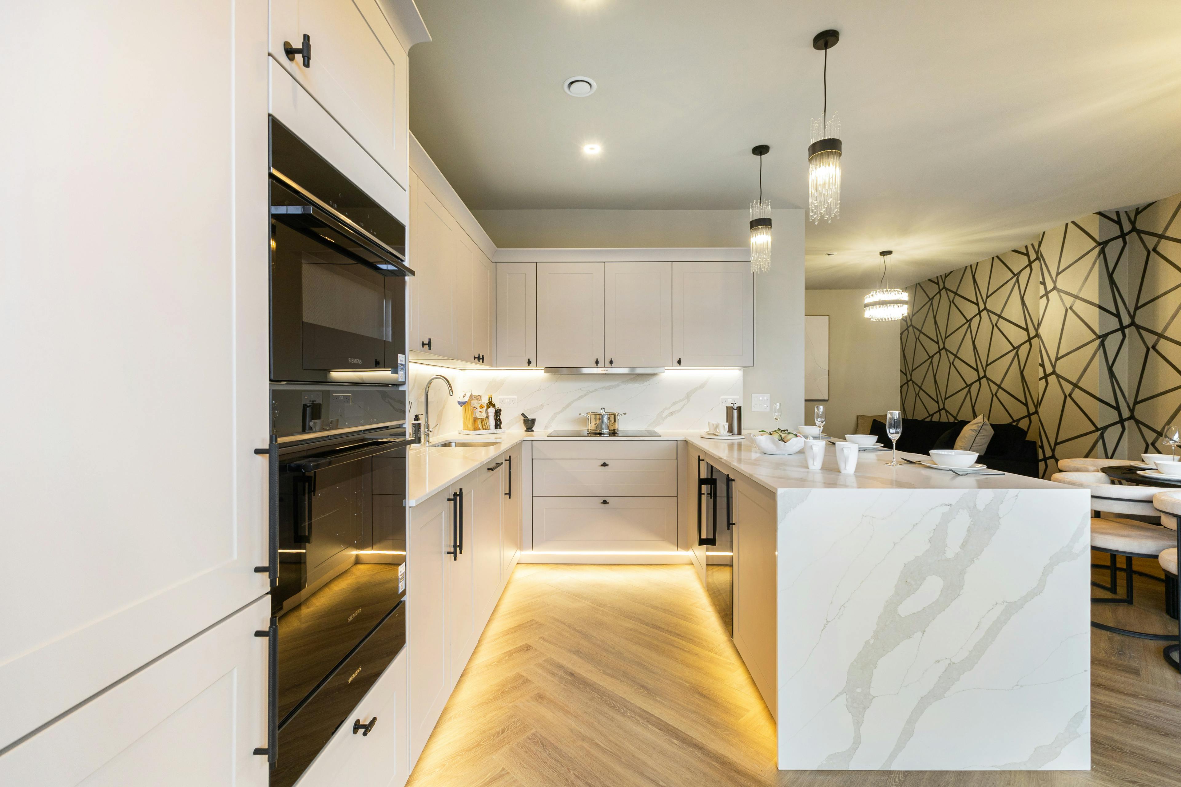 - Fully integrated high-end Siemens appliances including wine cooler with 2 temperature zones