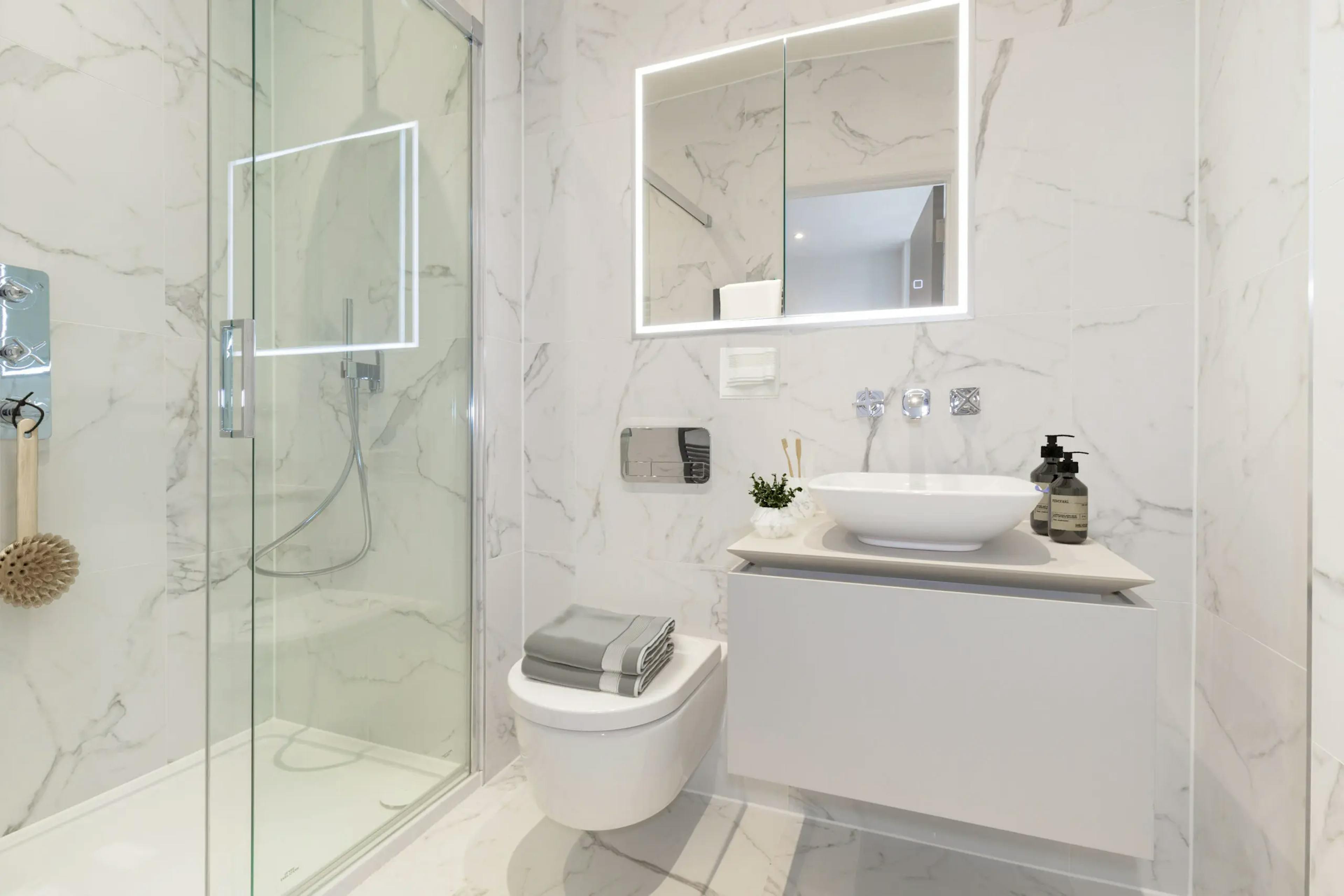 Penthouse OR31 is a luxurious two-bedroom home offering elevated living within the prestigious 1840, St George’s Gardens. Spanning 1,045 sq ft, this beautifully finished residence features a spacious open-plan living, dining, and kitchen area, complete with a stylish island and integrated appliances, ideal for relaxed evenings or effortless entertaining. Sliding glass doors open onto a private terrace with far-reaching views towards Wimbledon, creating a seamless indoor-outdoor experience.